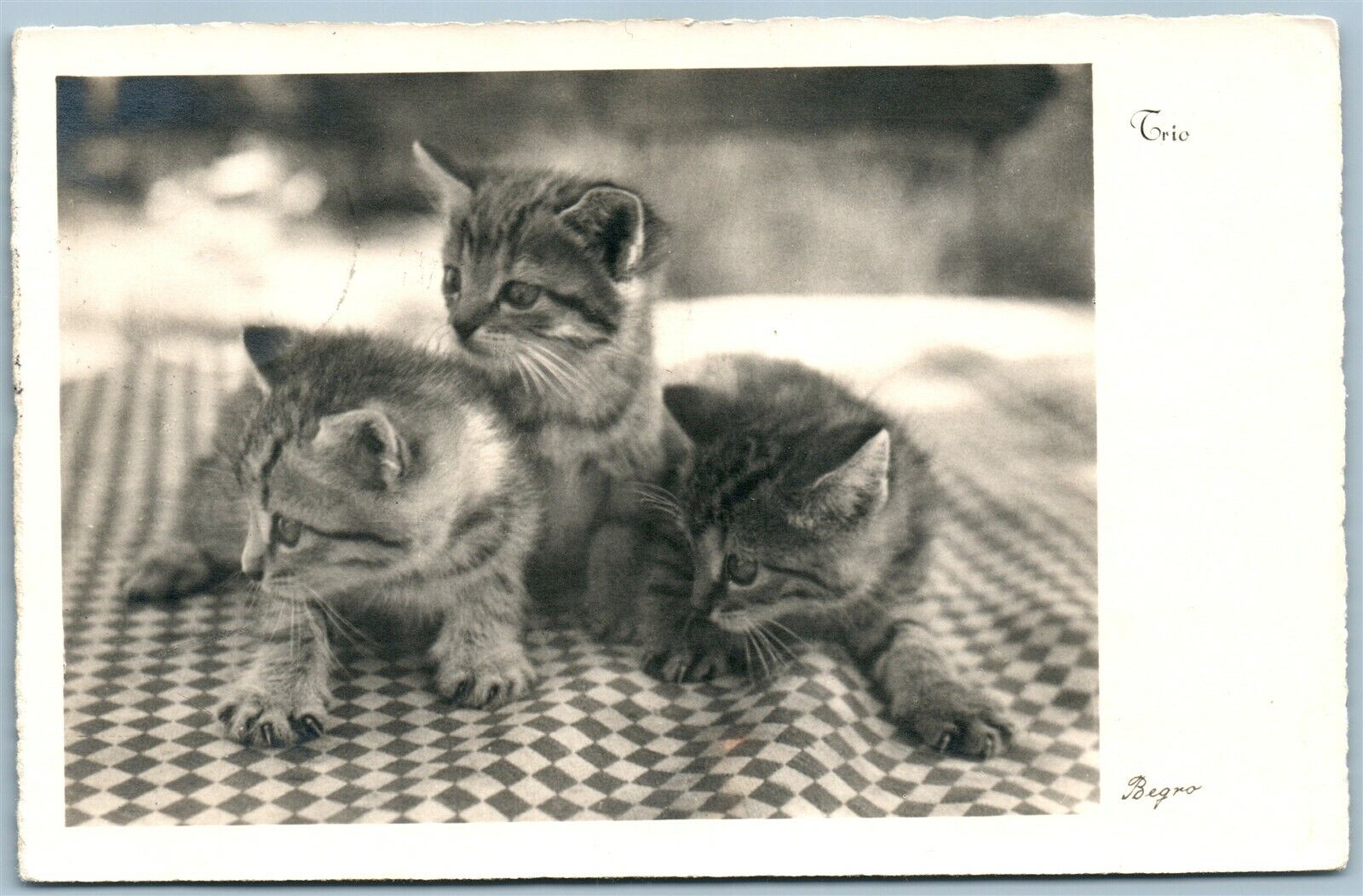 3 CUTE CATS ANTIQUE REAL PHOTO POSTCARD RPPC