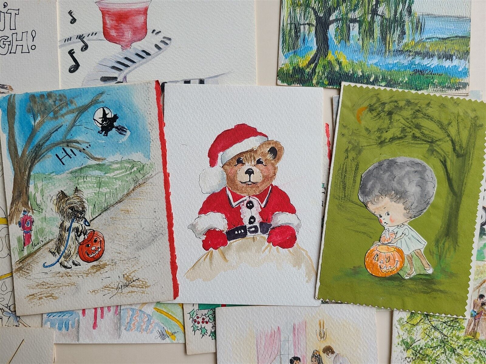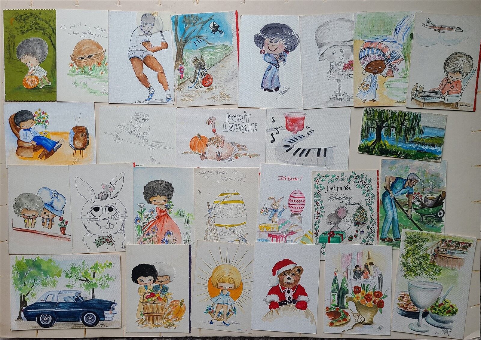 LOT of 55 UNIQUE HAND DRAWN ARTIST SIGNED VINTAGE POSTCARDS by HELEN WILLIAMS