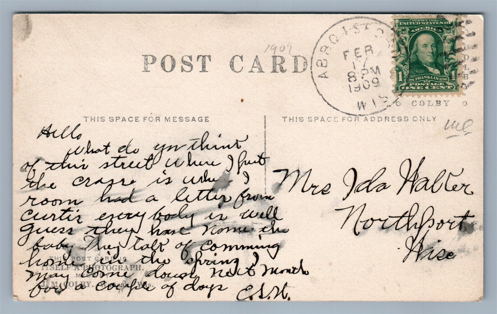 ABBOTTSFORD WI RESIDENCE STREET ANTIQUE REAL PHOTO POSTCARD RPPC