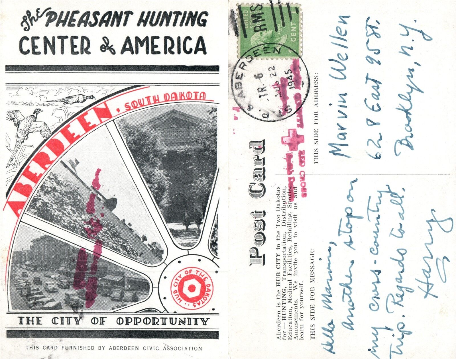 ABERDEEN S.D. PHEASANT HUNTING CENTER OF AMERICA 1945 VINTAGE POSTCARD RED CROSS