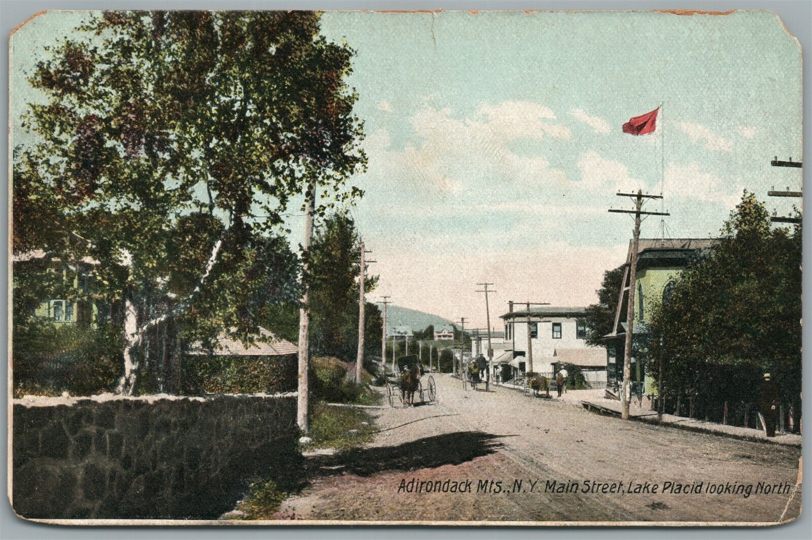 ADIRONDACK MTS. NY MAIN STREET LAKE PLACID ANTIQUE POSTCARD