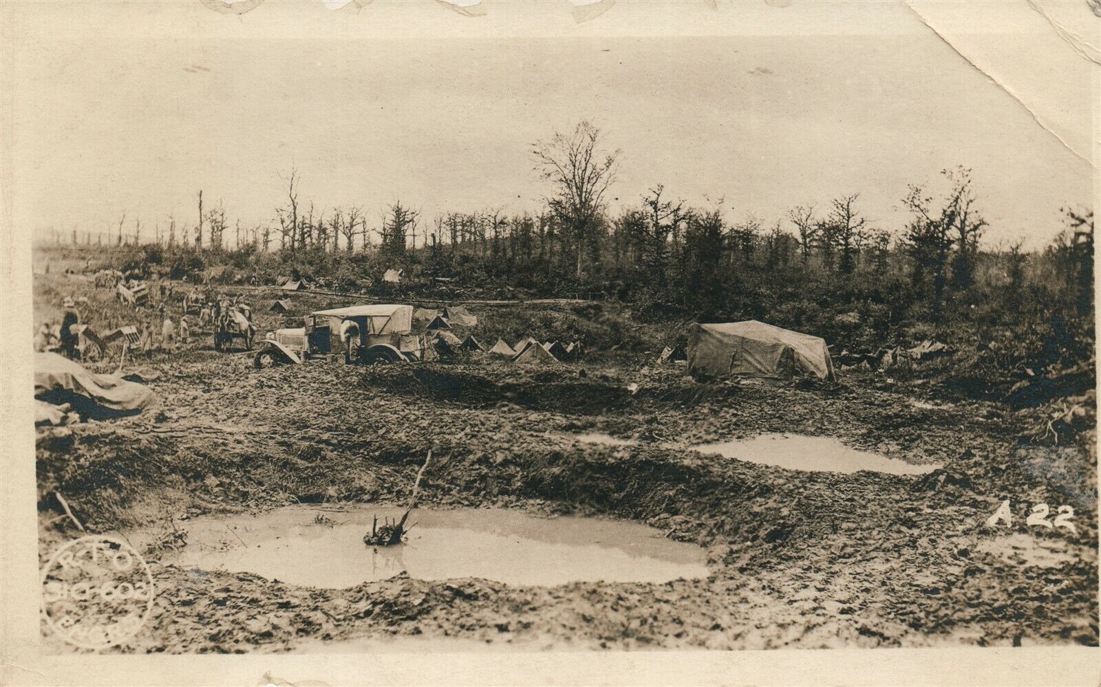 AFTER THE FIGHT WWI ERA ANTIQUE REAL PHOTO POSTCARD RPPC destroyed car