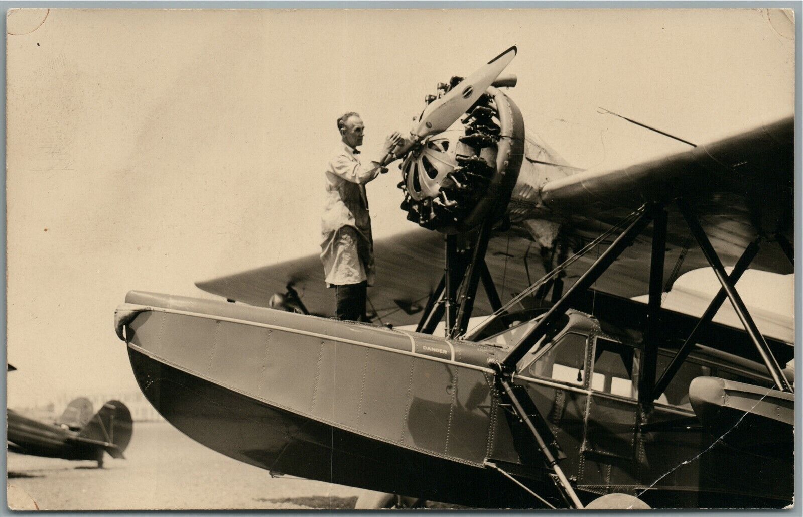 AIRPLANE TECHNICAL CHECK UP VINTAGE REAL PHOTO POSTCARD RPPC