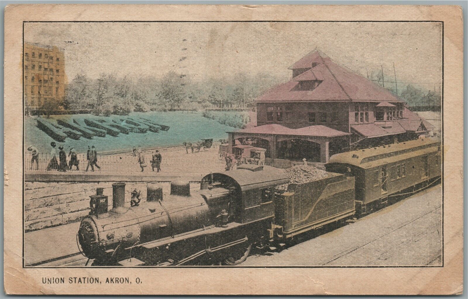 AKRON OH RAILROAD STATION RAILWAY DEPOT ANTIQUE POSTCARD
