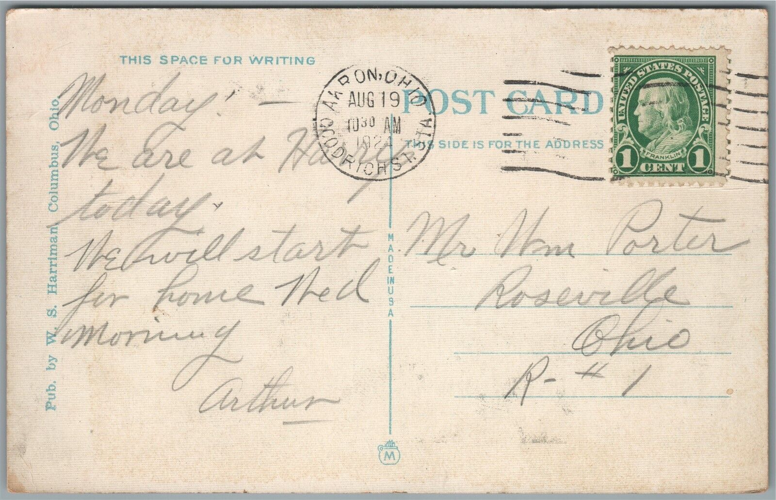 AKRON OH UNION RAILROAD STATION RAILWAY DEPOT 1924 ANTIQUE POSTCARD