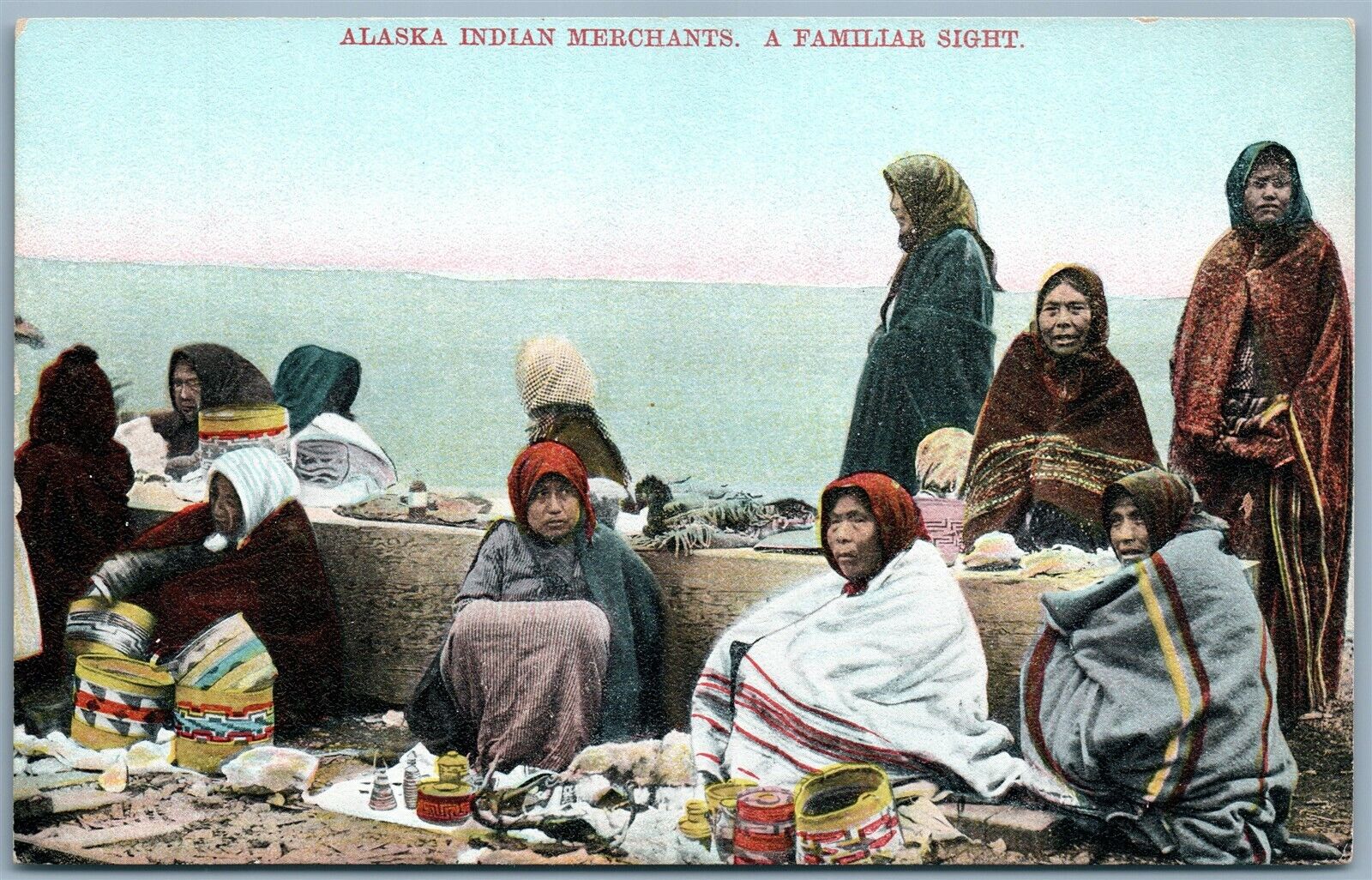 ALASKA INDIAN MERCHANTS A FAMILLAR SIGHT ANTIQUE POSTCARD