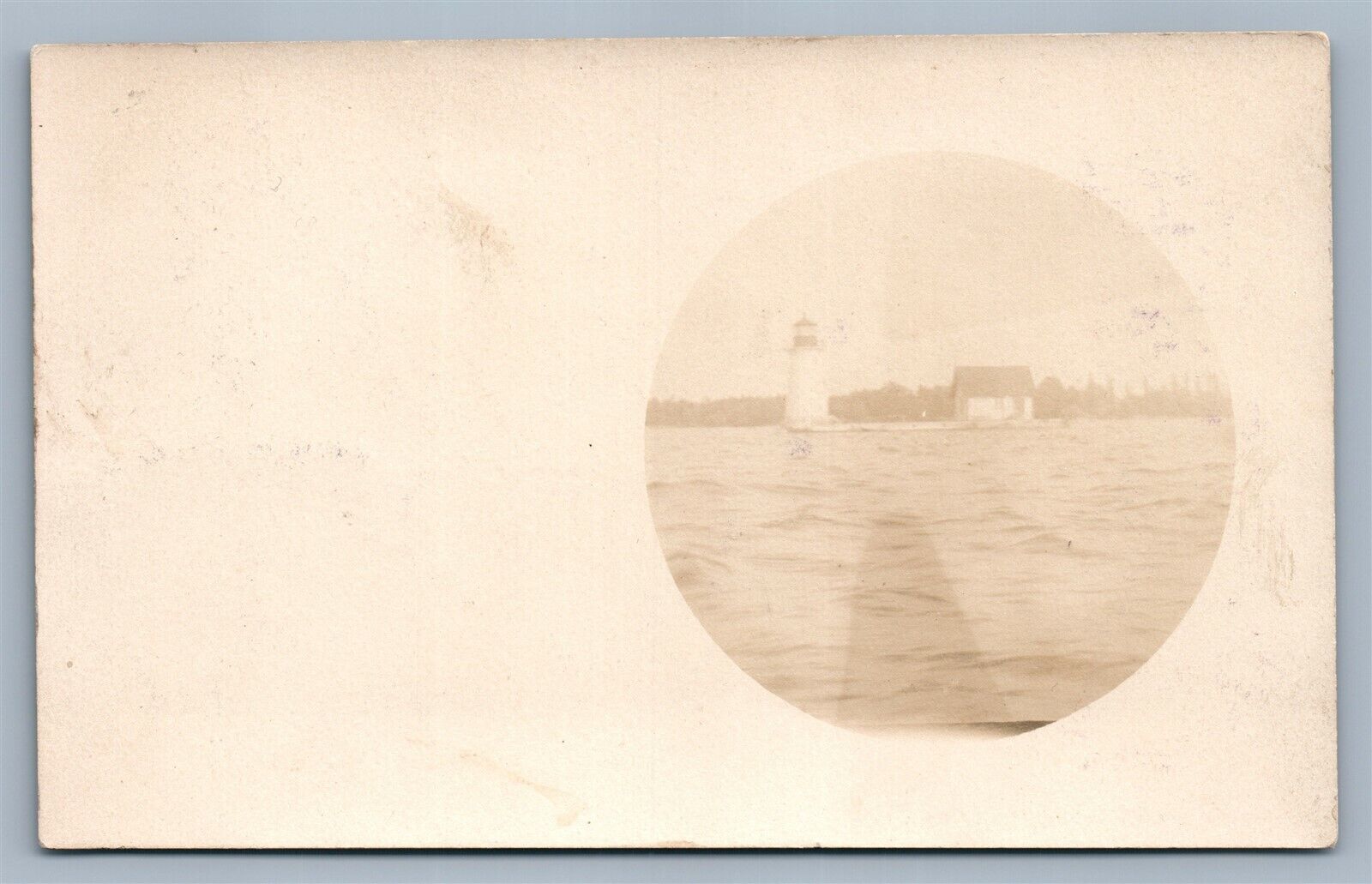 ALEXANDRIA BAY NY SUNKEN ROCK LIGHT HOUSE ANTIQUE REAL PHOTO POSTCARD RPPC