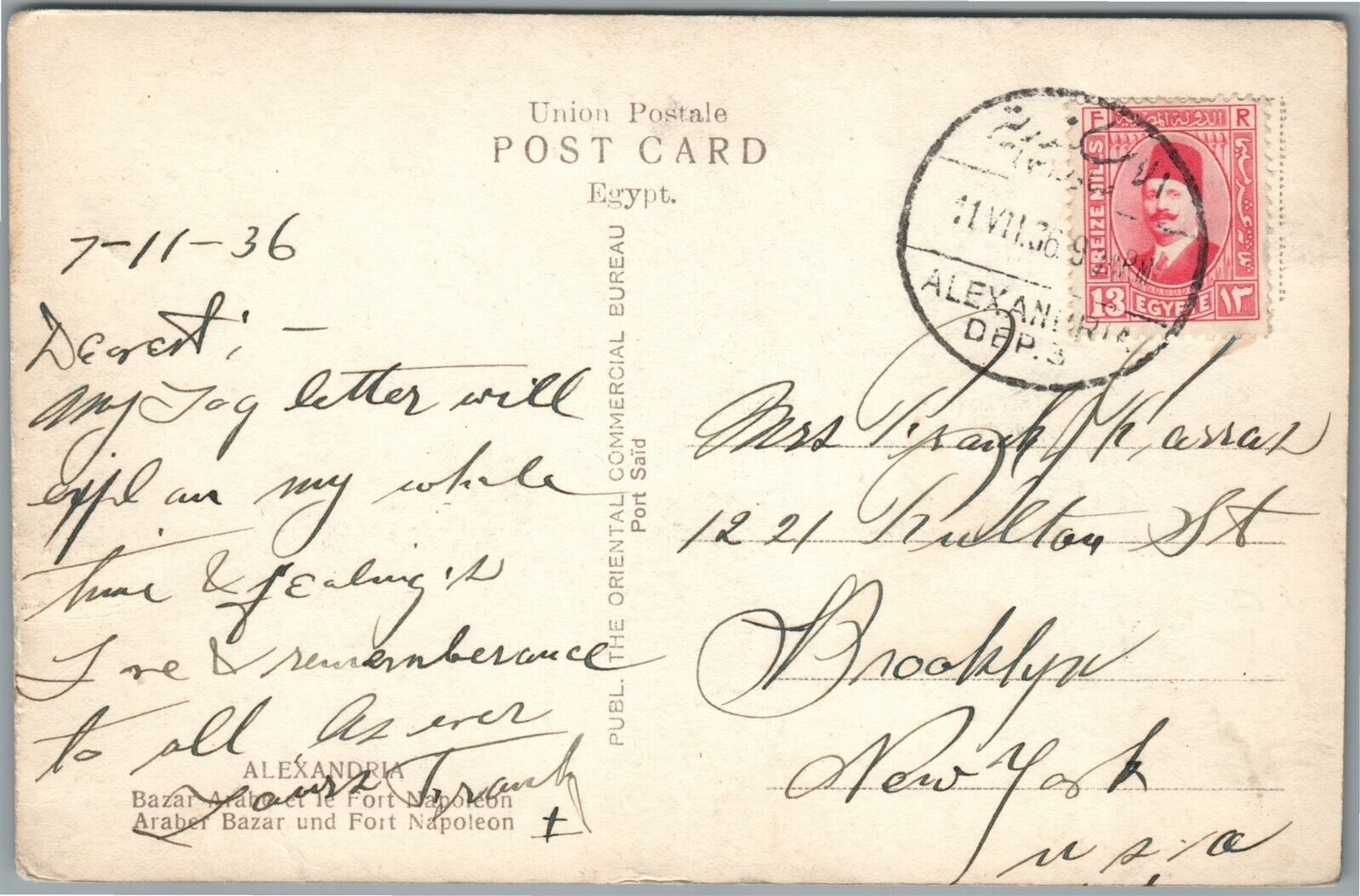 ALEXANDRIA EGYPT NATIVE BAZAAR & FORT NAPOLEON VINTAGE REAL PHOTO POSTCARD RPPC
