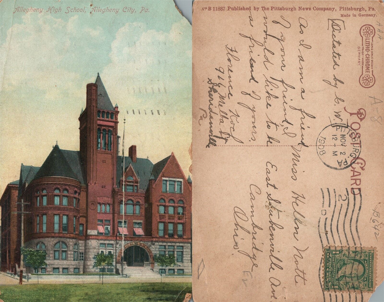 ALLEGHENY CITY HIGH SCHOOL 1908 ANTIQUE POSTCARD