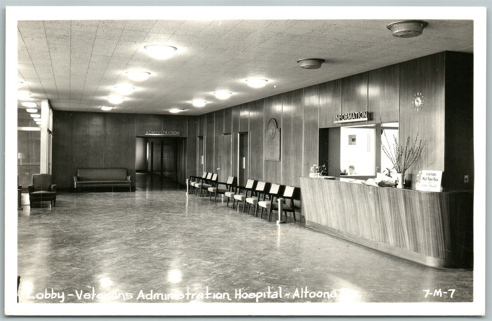 ALTOONA PA VETERAN'S ADM. HOSPITAL LOBBY VINTAGE REAL PHOTO POSTCARD RPPC