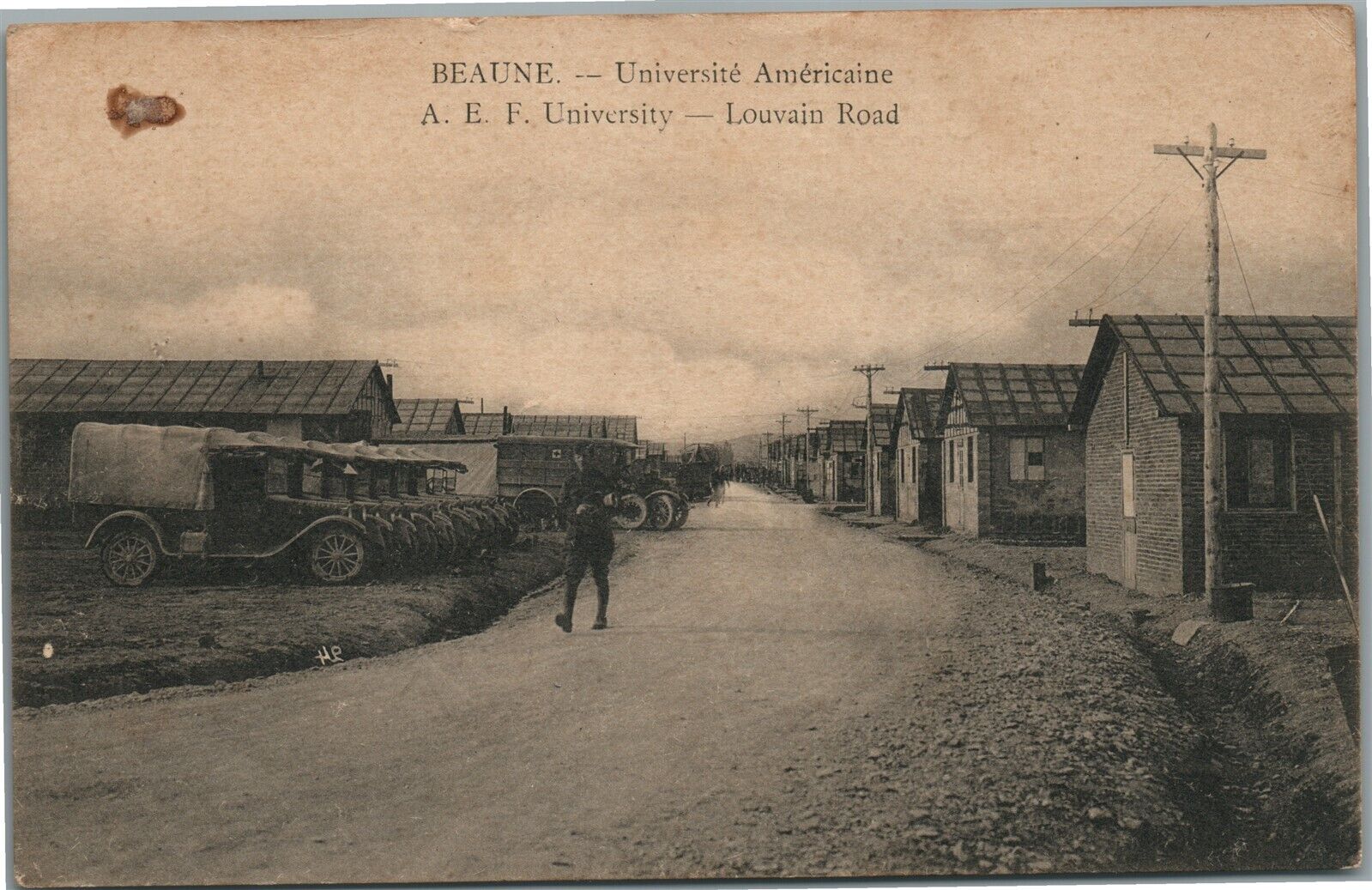 AMERICAN ARMY TRUCKS in FRANCE BEAUNE UNIVERSITE AMERICAINE ANTIQUE POSTCARD