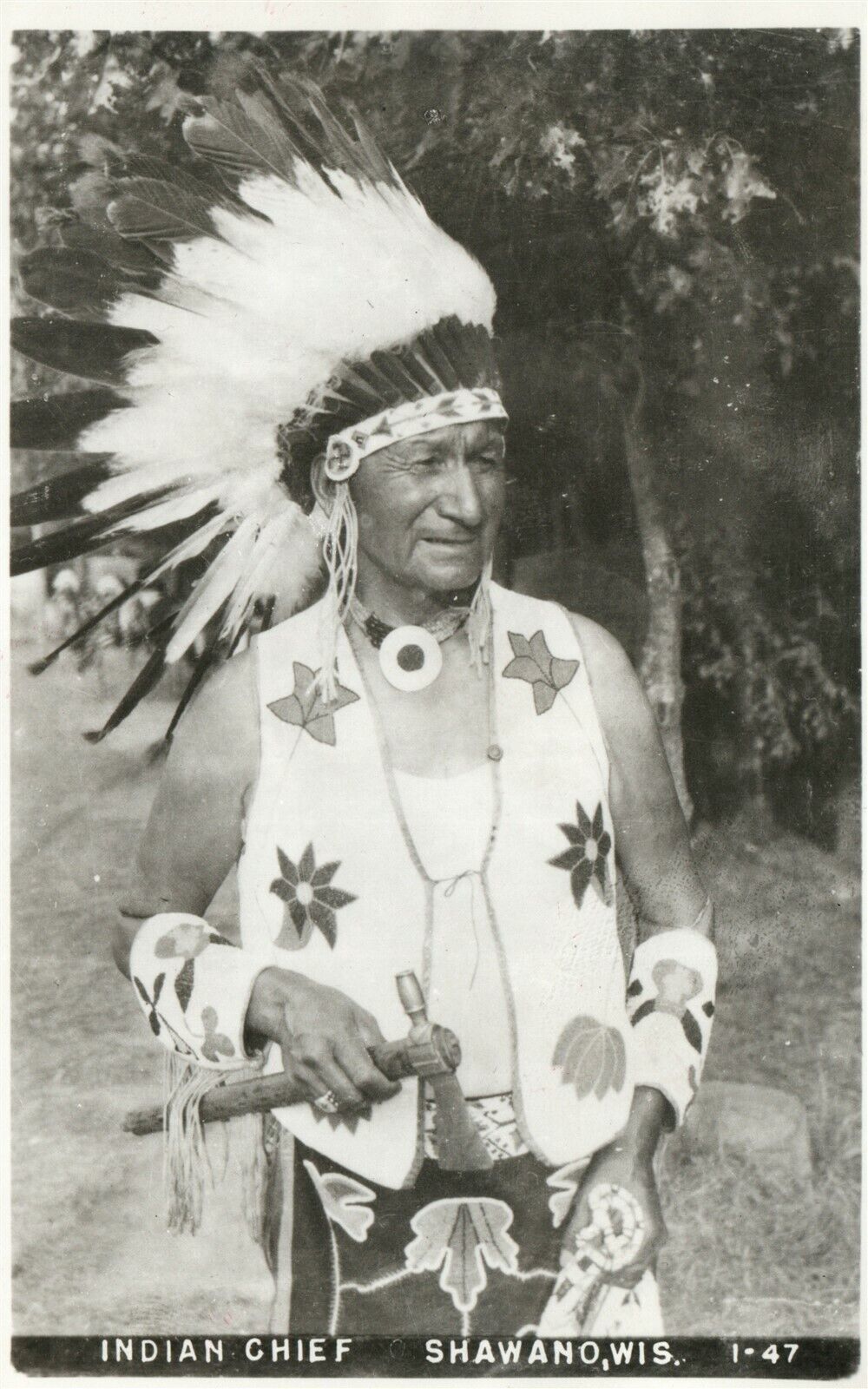 AMERICAN INDIAN CHIEF SHAWANO WI 1954 VINTAGE REAL PHOTO POSTCARD RPPC