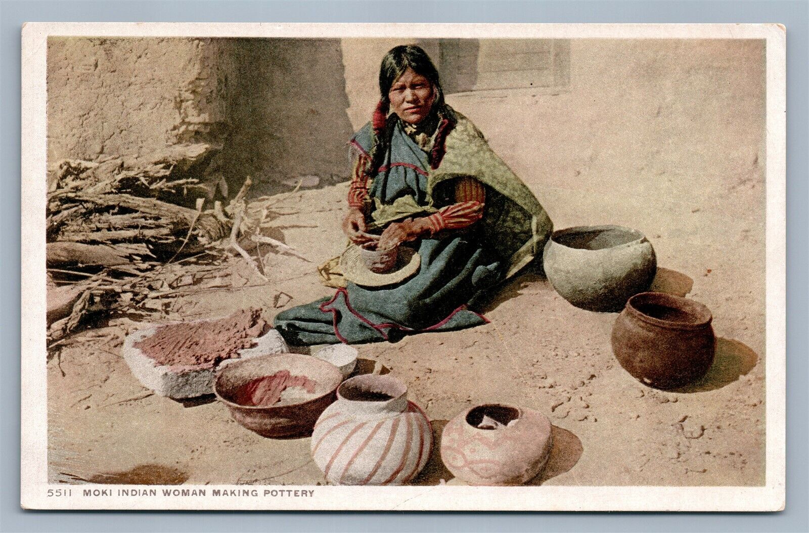 AMERICAN INDIAN MOKI WOMAN MAKING POTTERY ANTIQUE POSTCARD