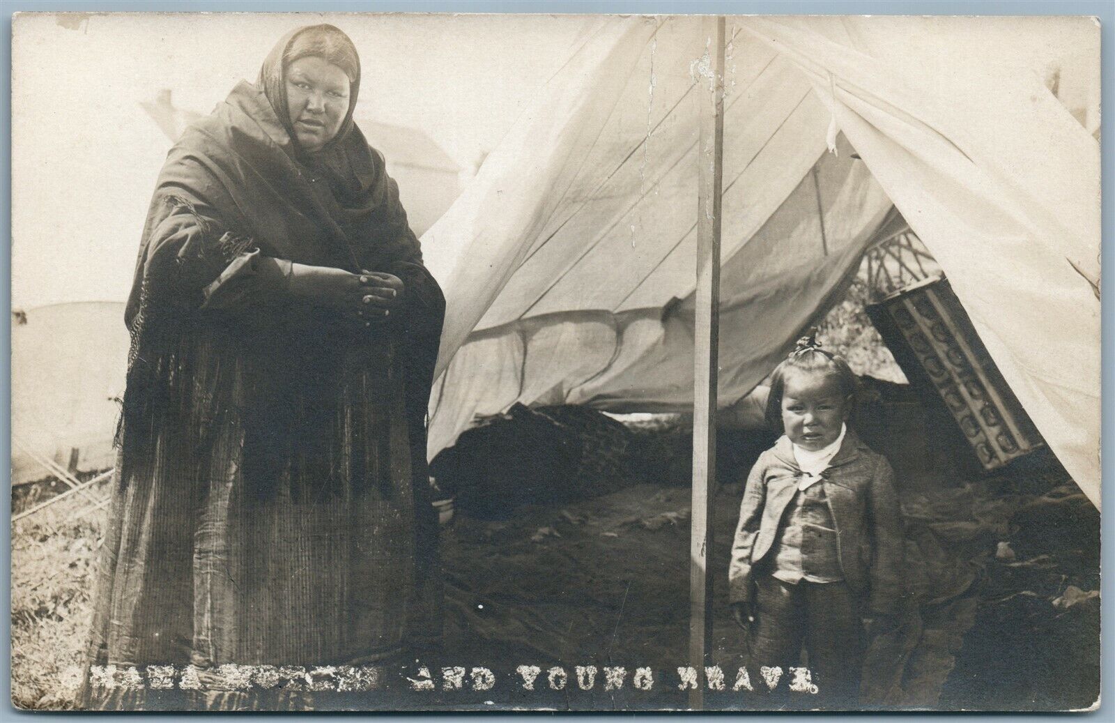 AMERICAN INDIAN MOTHER w/ KID ANTIQUE REAL PHOTO POSTCARD RPPC