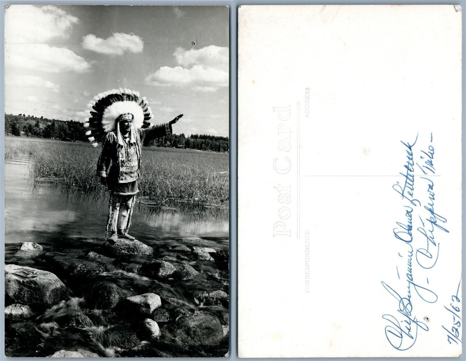 AMERICAN INDIAN TRIBAL CHIEF VINTAGE REAL PHOTO POSTCARD RPPC