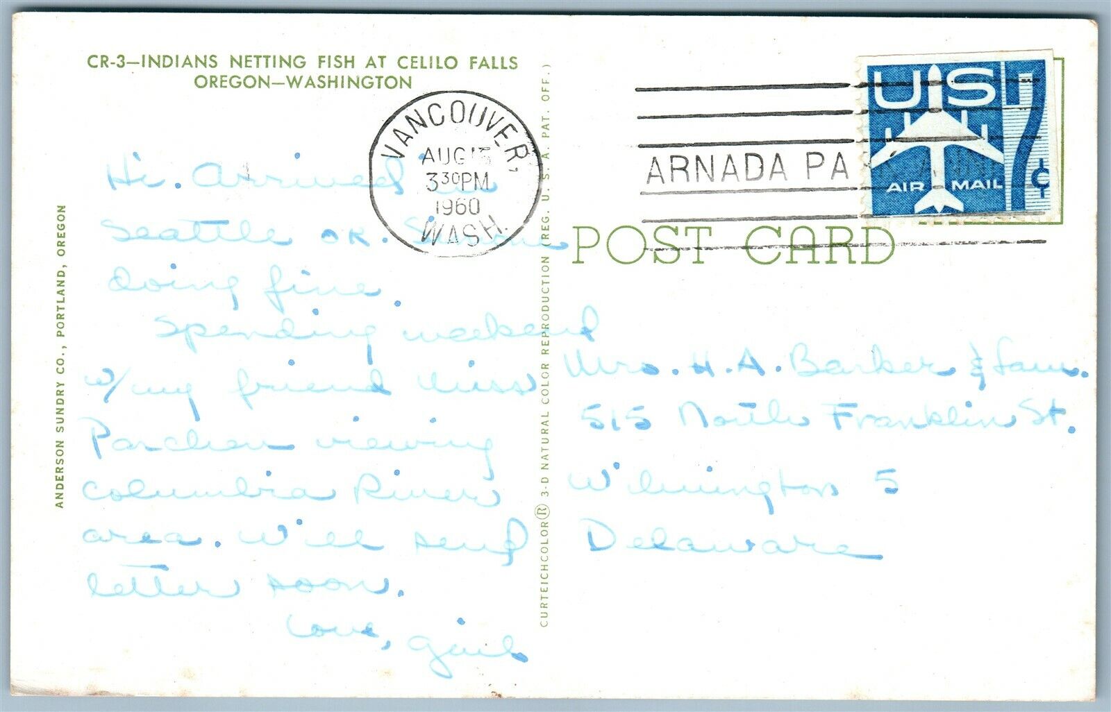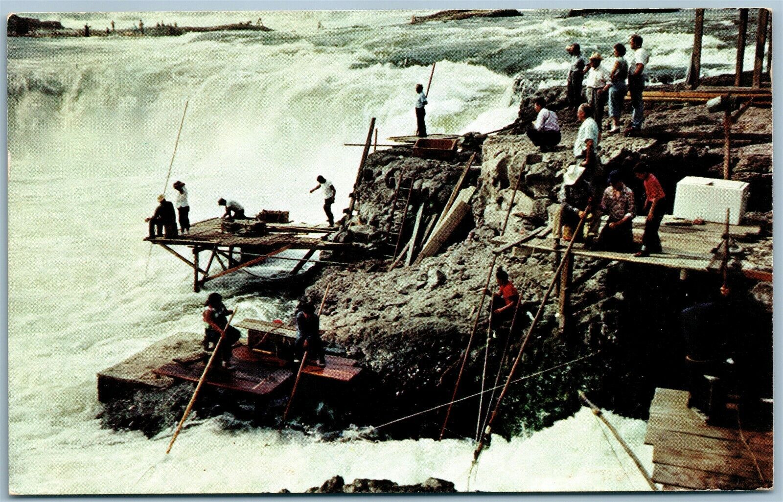 AMERICAN INDIANS NETTING FISH CELILO FALLS OREGON WASHINGTON VINTAGE POSTCARD