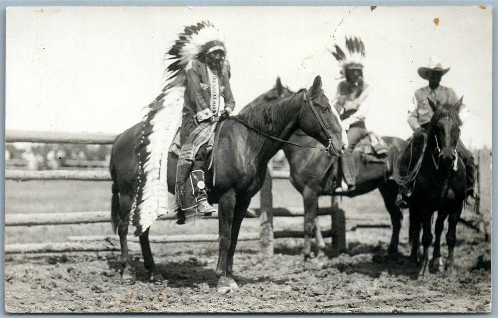 AMERICAN INDIANS on HORSES ANTIQUE REAL PHOTO POSTCARD RPPC