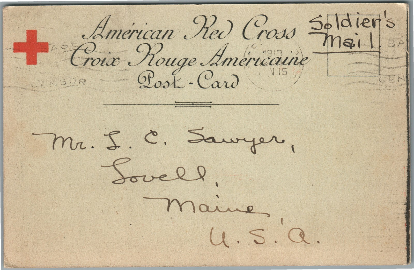 AMERICAN RED CROSS 1919 WWI ERA ANTIQUE POSTCARD