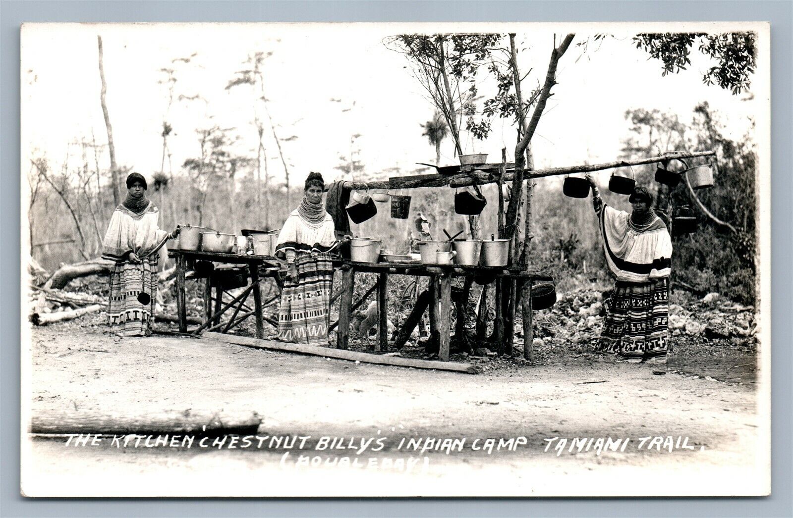 AMERICAN SEMINOLE INDIAN KITCHEN TAMAIAMI TRAIL VINTAGE REAL PHOTO POSTCARD RPPC