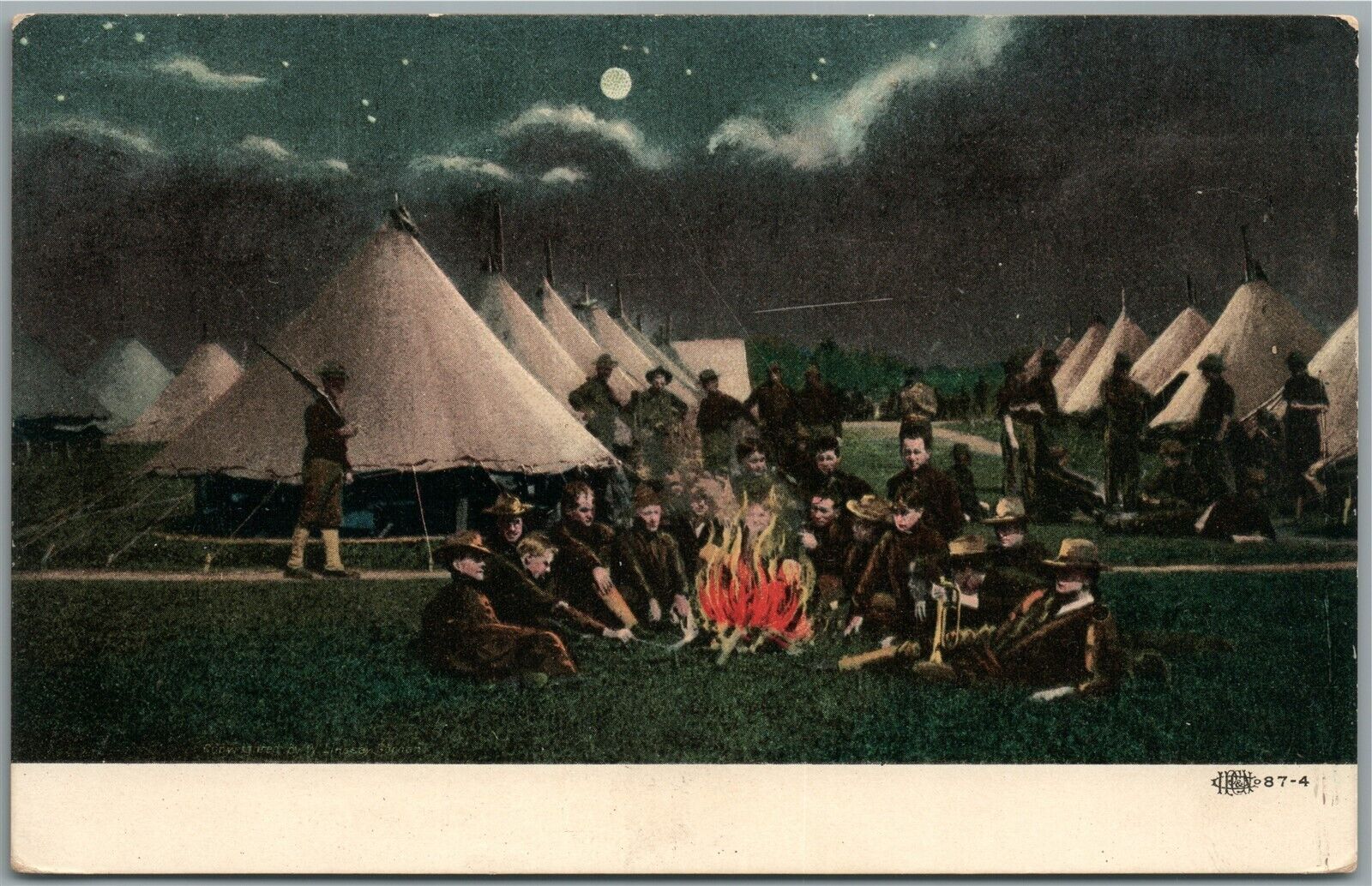 AMERICAN SOLDIERS AT REST MILITARY THEME ANTIQUE POSTCARD