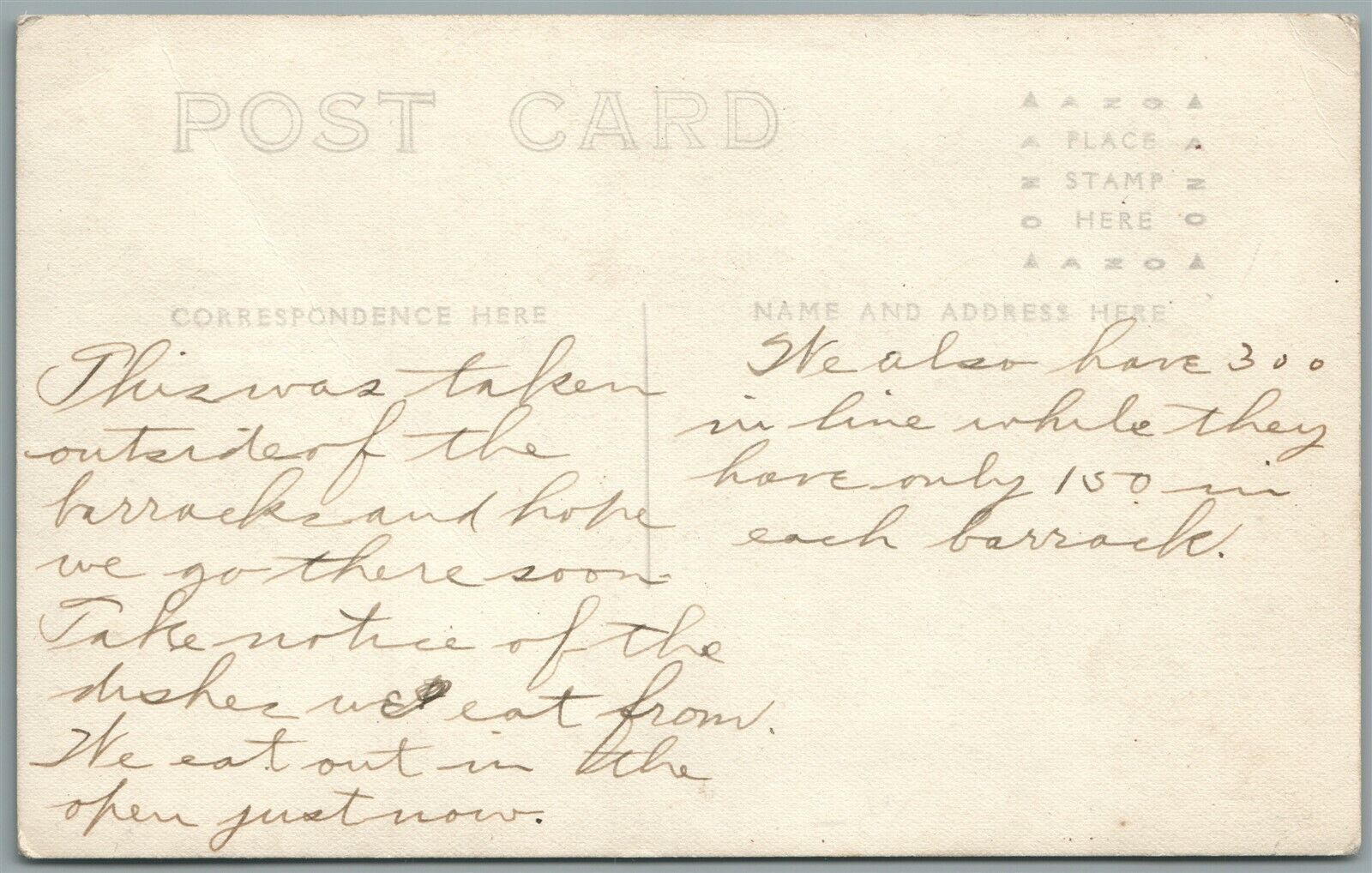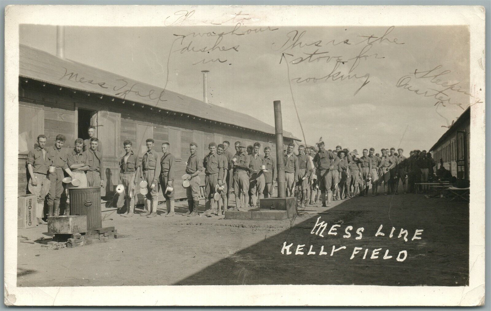 AMERICAN SOLDIERS MESS LINE KELLY FIELD ANTIQUE REAL PHOTO POSTCARD RPPC