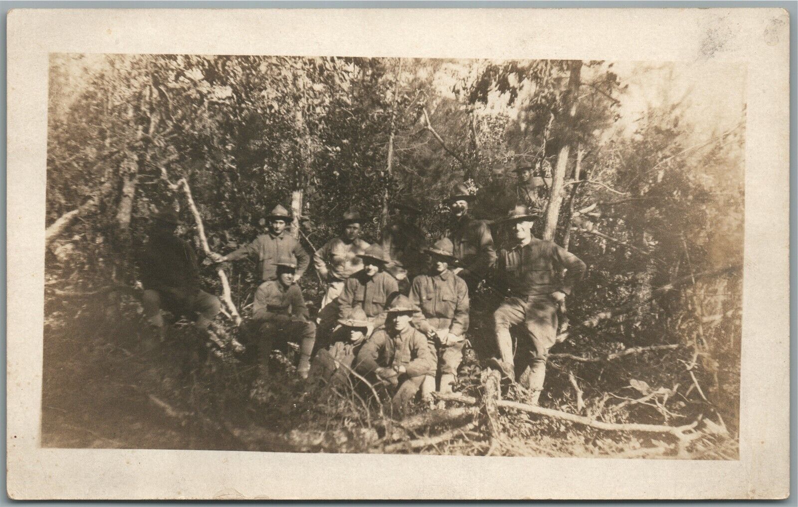 AMERICAN SOLDIERS WWI GROUP ANTIQUE REAL PHOTO POSTCARD RPPC