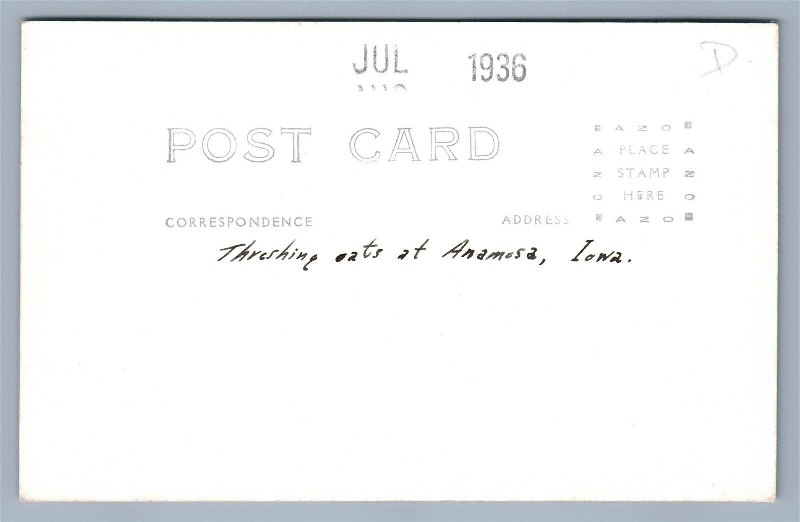ANAMESA IA TRESHING OATS VINTAGE REAL PHOTO POSTCARD RPPC FARMING TRUCK TRACTOR