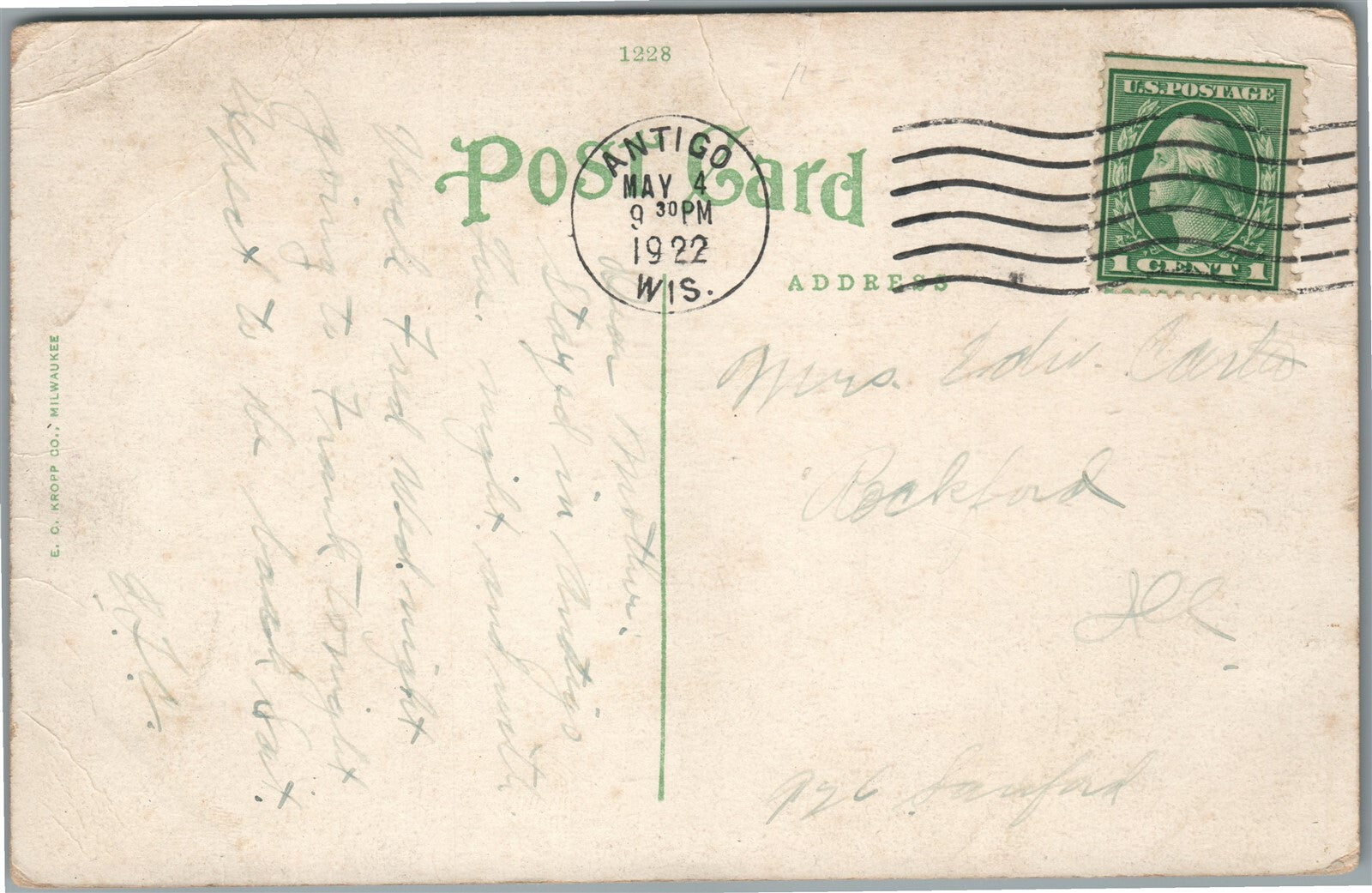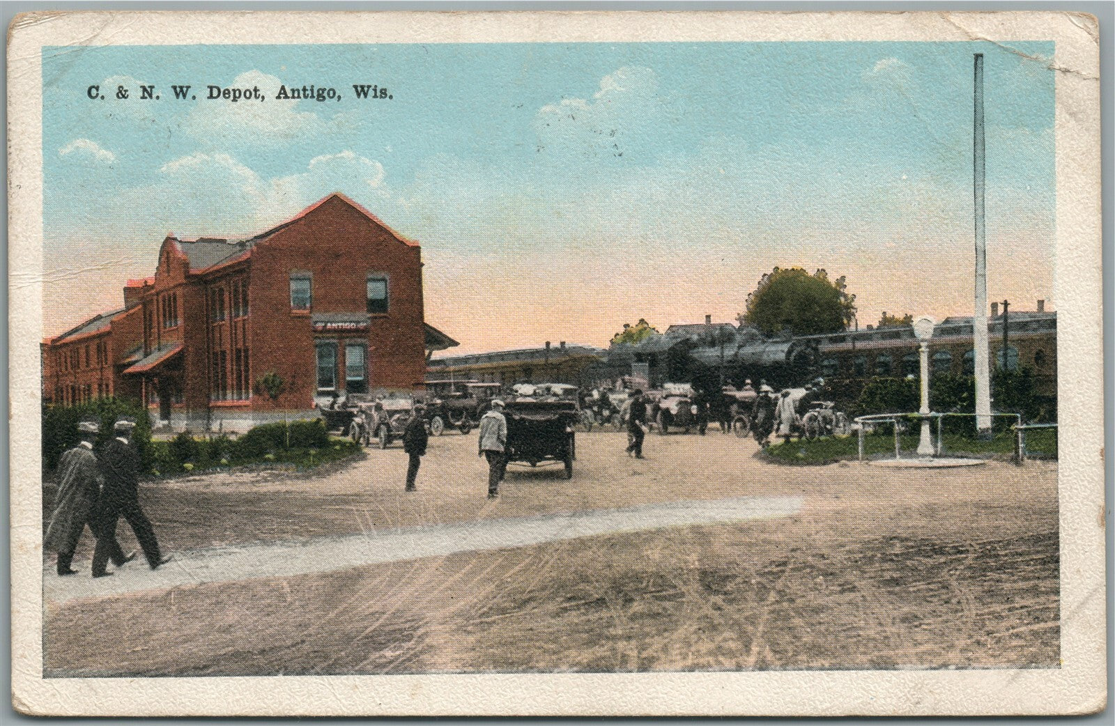 ANTIGO WI RAILROAD STATION RAILWAY TRAIN DEPOT ANTIQUE POSTCARD