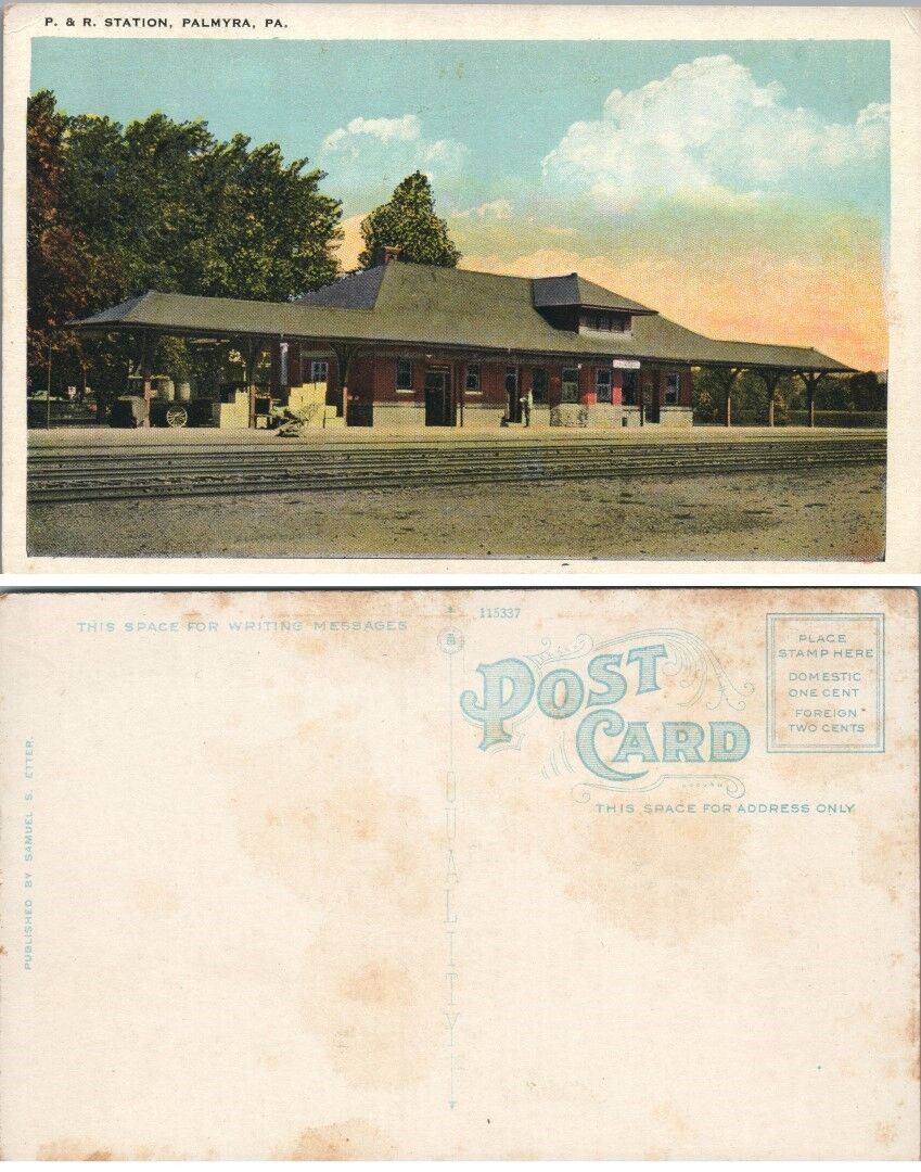 ANTIQUE POSTCARD R. & R. STATION PALMYRA PA railroad depot railway train