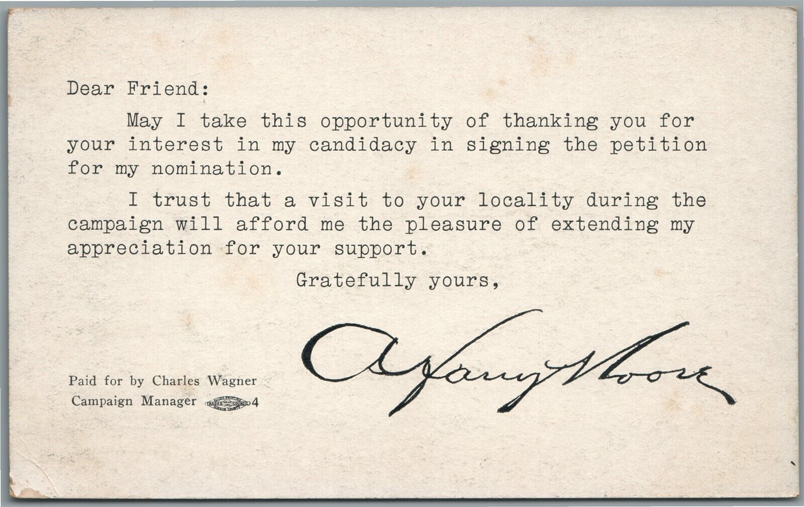 ARCH ALFRED MOORE JR. GOVERNOR of WEST VIRGINIA ANTIQUE POSTCARD