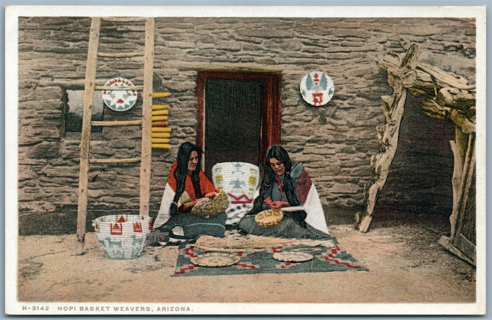 ARIZONA HOPI INDIAN BASKET WEAVERS ANTIQUE POSTCARD