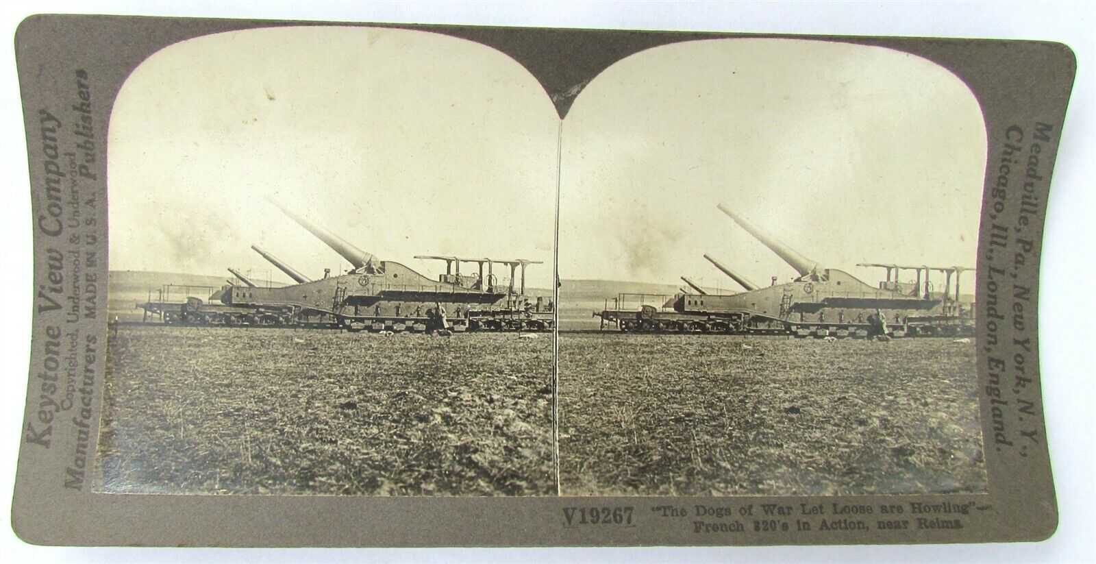ARTILLERY FRENCH 320's GUNS DOGS of WAR WWI STEREOVIEW PHOTO