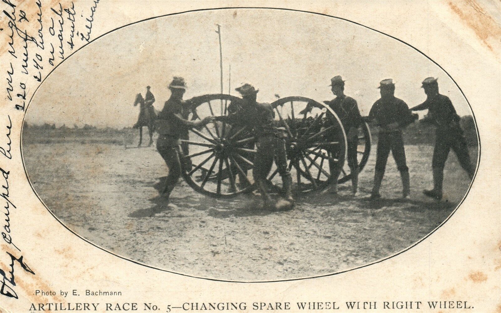 ARTILLERY RACE CHANGING SPARE WHEEL 1906 UNDIVIDED ANTIQUE POSTCARD