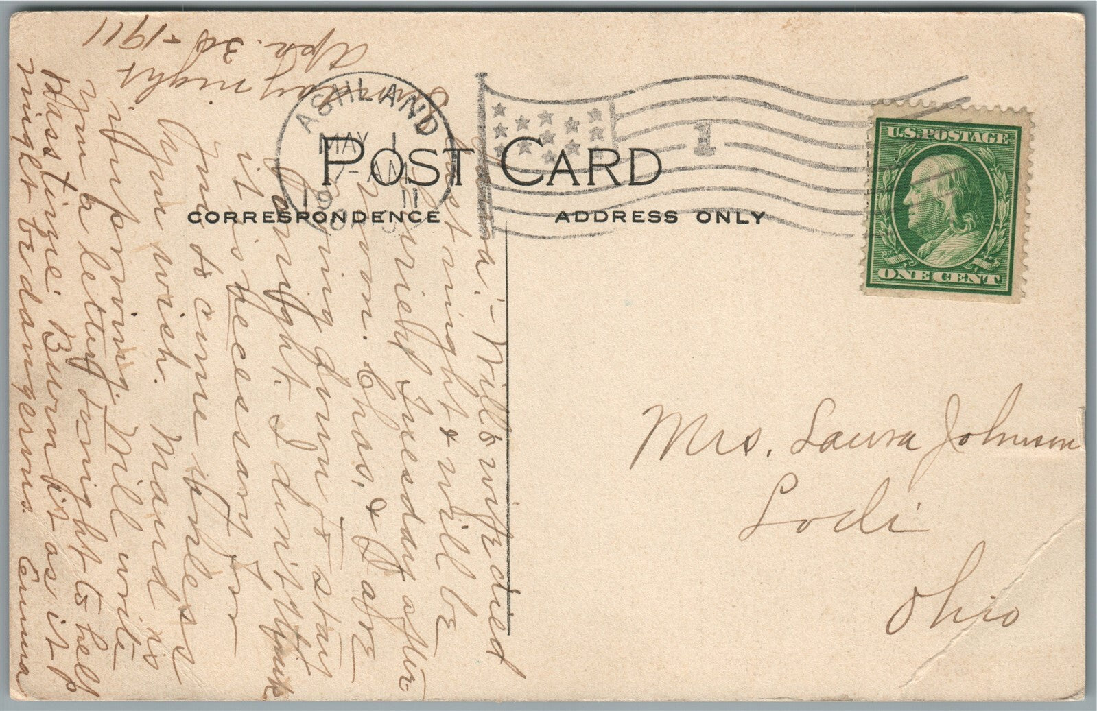ASHLAND OH CENTER STREET RESIDENCES ANTIQUE POSTCARD