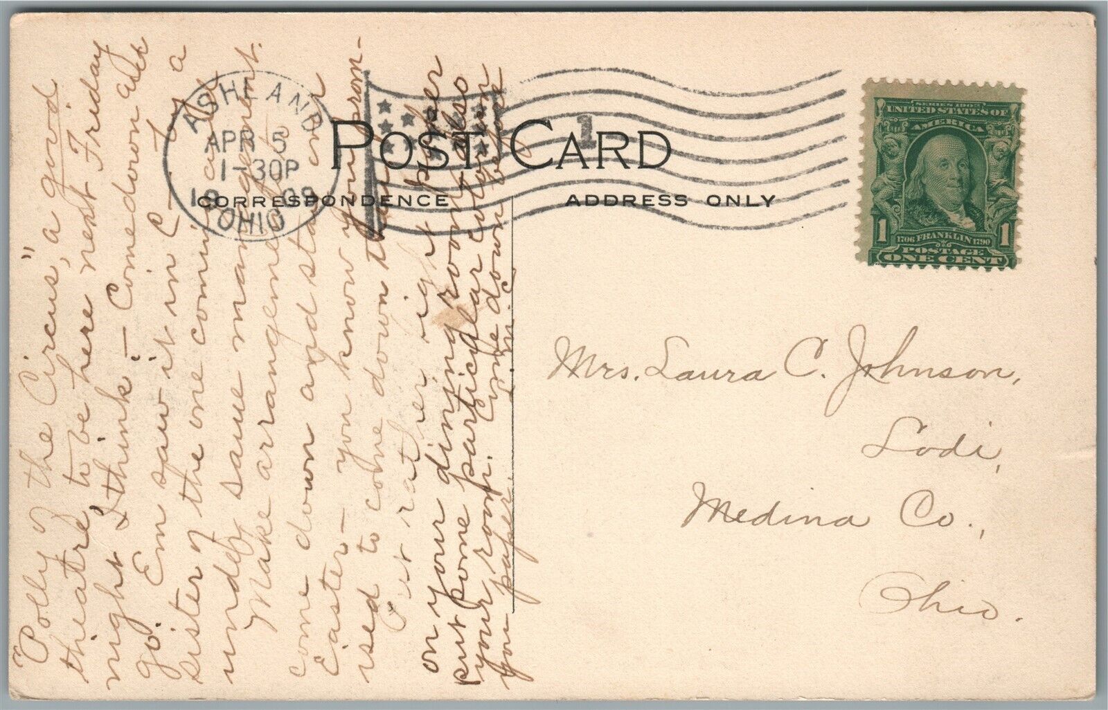 ASHLAND OH SANDUSKY STREET 1909 ANTIQUE POSTCARD