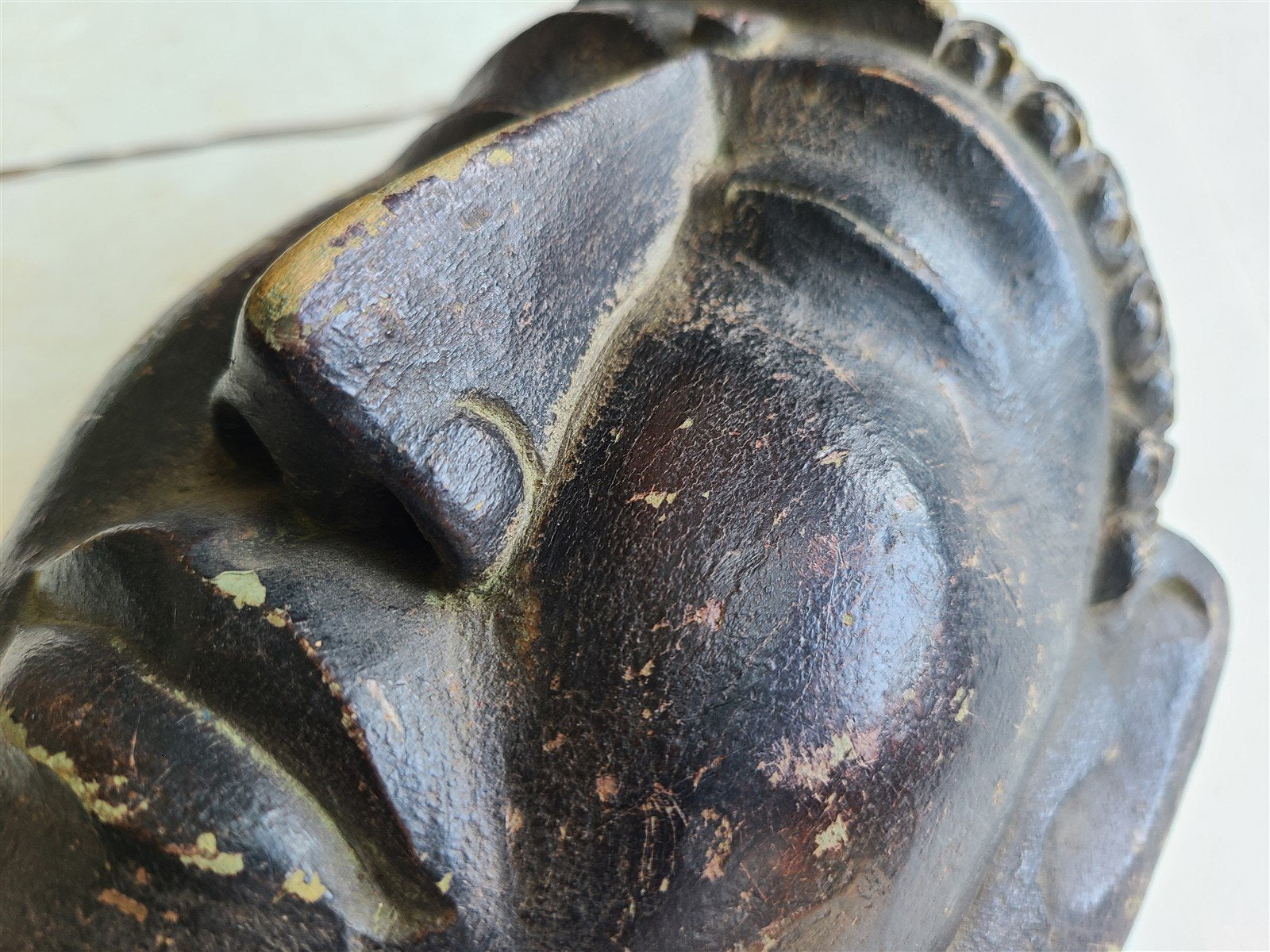 ASIAN THAI? ANTIQUE WOODEN MASK of BUDDHA hand carved BUDDAH