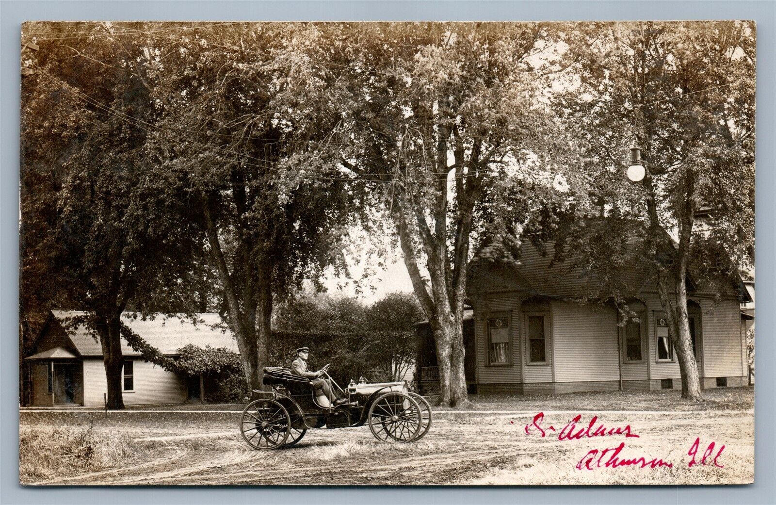 ATKINSON IL STREET VIEW 1904 COLE AUTOMOBILE ANTIQUE REAL PHOTO POSTCARD RPPC