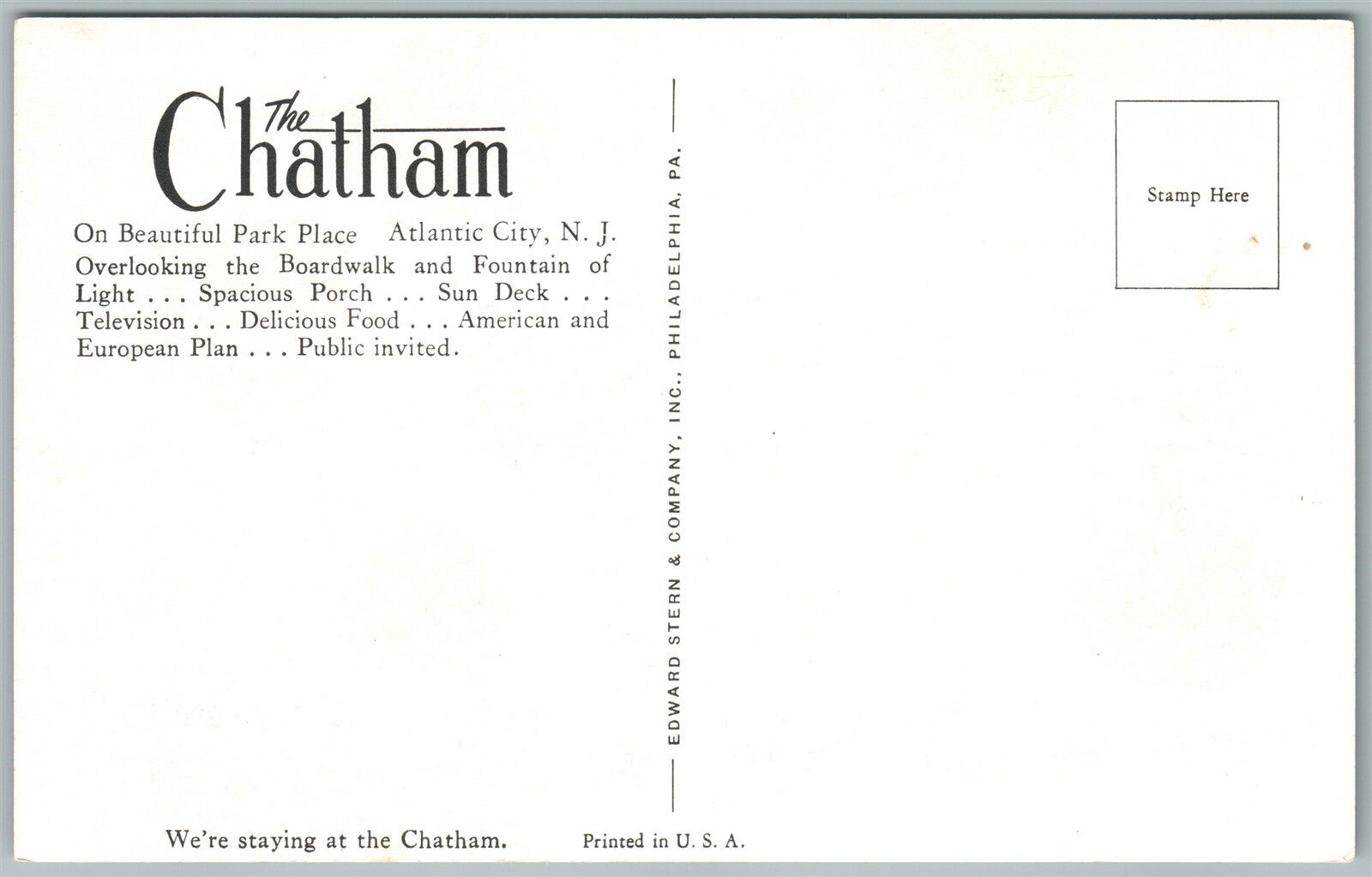 ATLANTIC CITY N.J. CHATHAM HOTEL on PARK PLACE VINTAGE POSTCARD