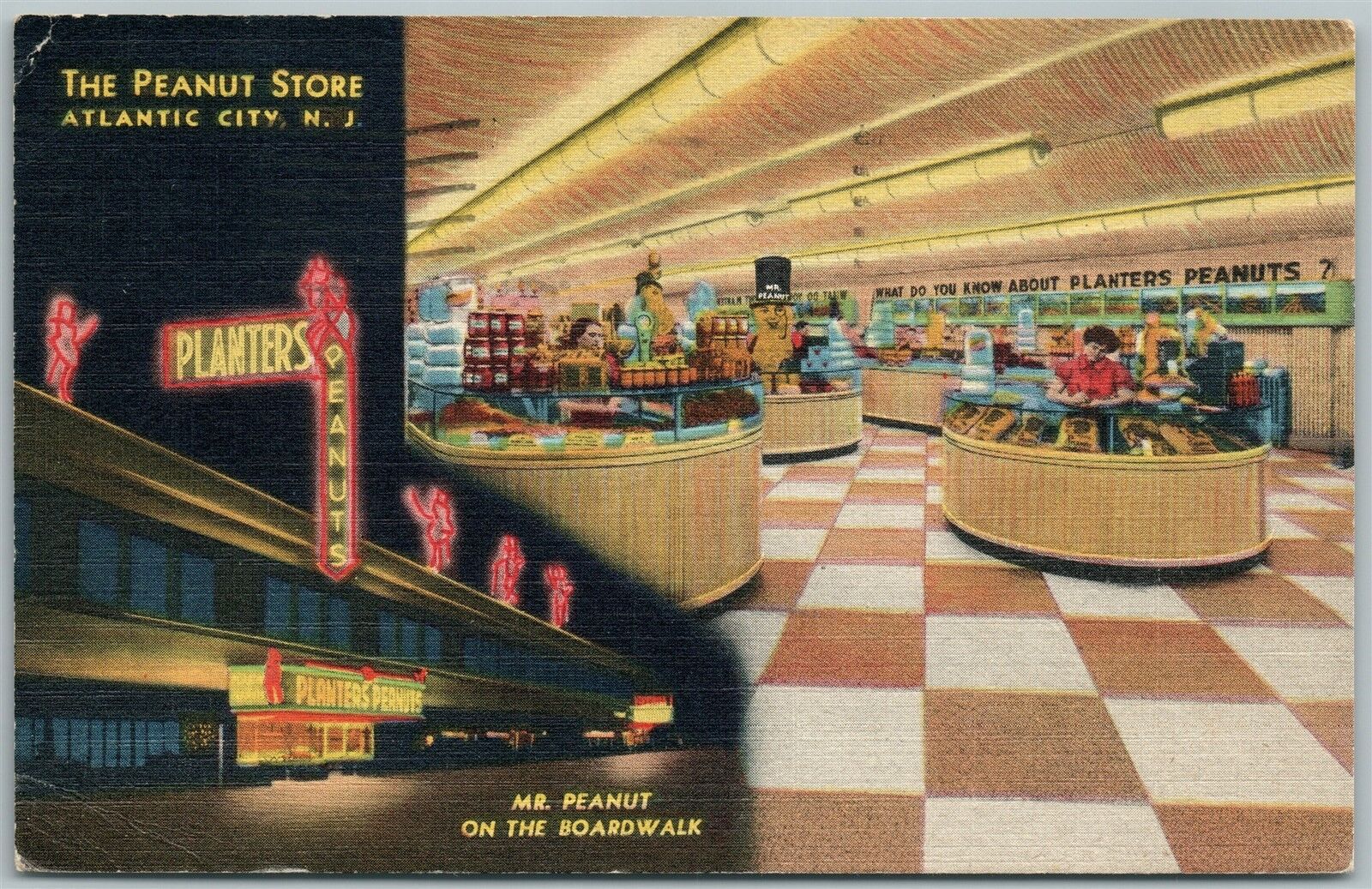ATLANTIC CITY NJ MR.PEANUT STORE on the BOARDWALK 1946 VINTAGE POSTCARD