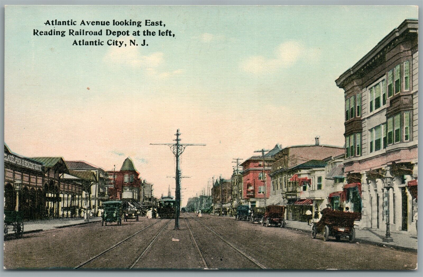 ATLANTIC CITY NJ READING RAILROAD DEPOT RAILWAY STATION ANTIQUE POSTCARD