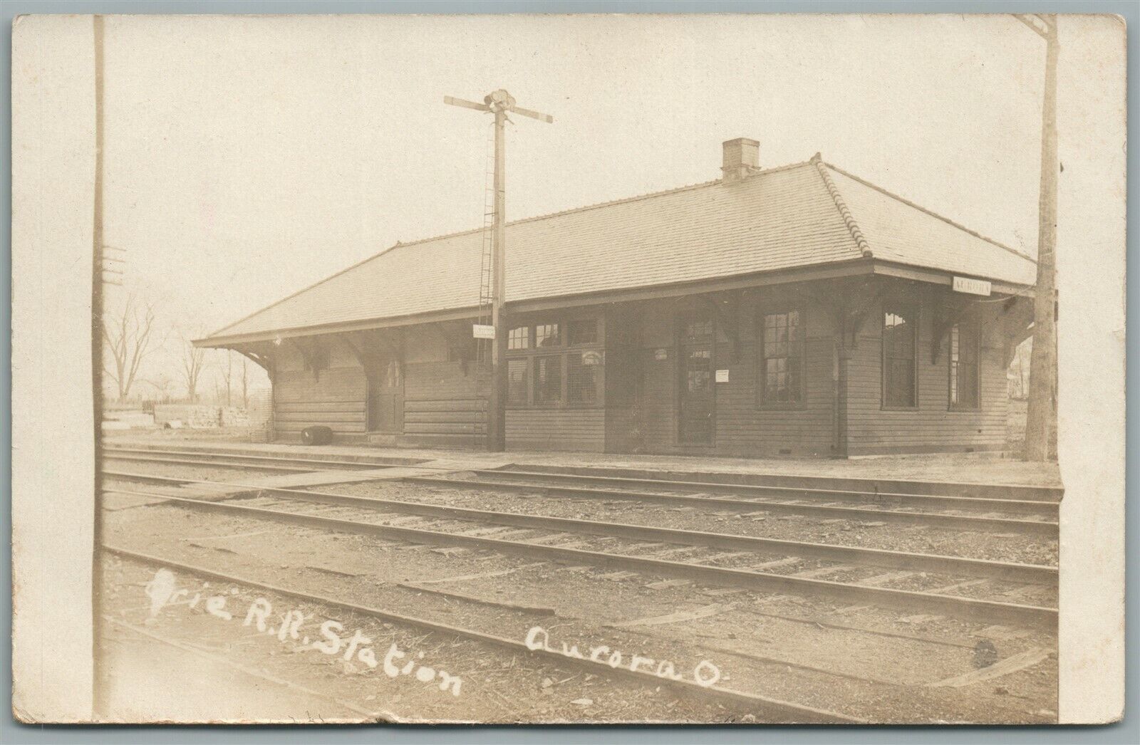 AURORA OH RAILROAD STATION RAILWAY TRAIN DEPOT ANTIQUE REAL PHOTO POSTCARD RPPC