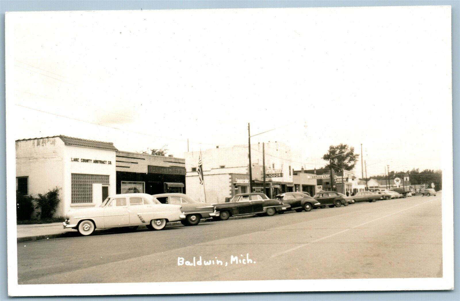 BALDWIN MI STREET SCENE VINTAGE REAL PHOTO POSTCARD RPPC