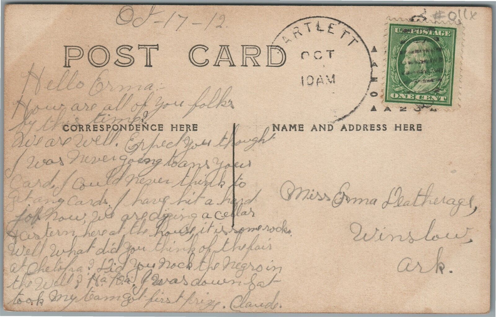 BARLETT KS BUSINESS STATION ANTIQUE REAL PHOTO POSTCARD RPPC