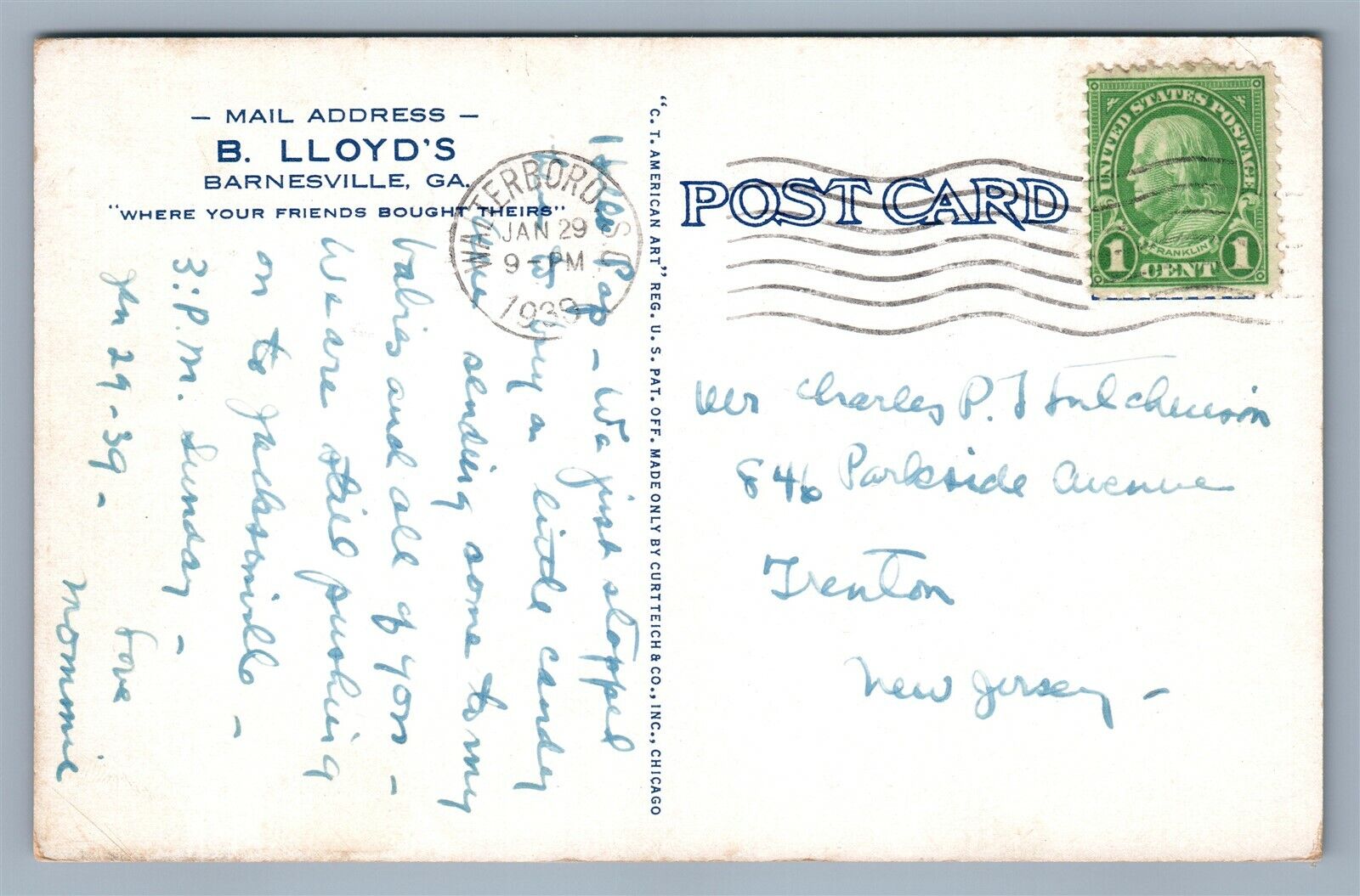 BARNESVILLE GA B.LLOYD'S SERVICE GAS STATIONS 1939 VINTAGE POSTCARD