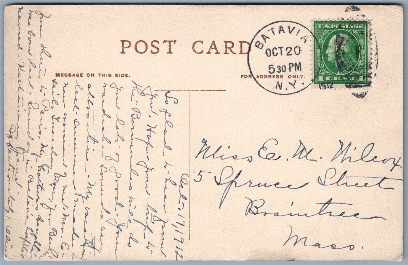BATAVIA NY WASHINGTON AVENUE SCHOOL ANTIQUE POSTCARD w/ CORK CANCEL