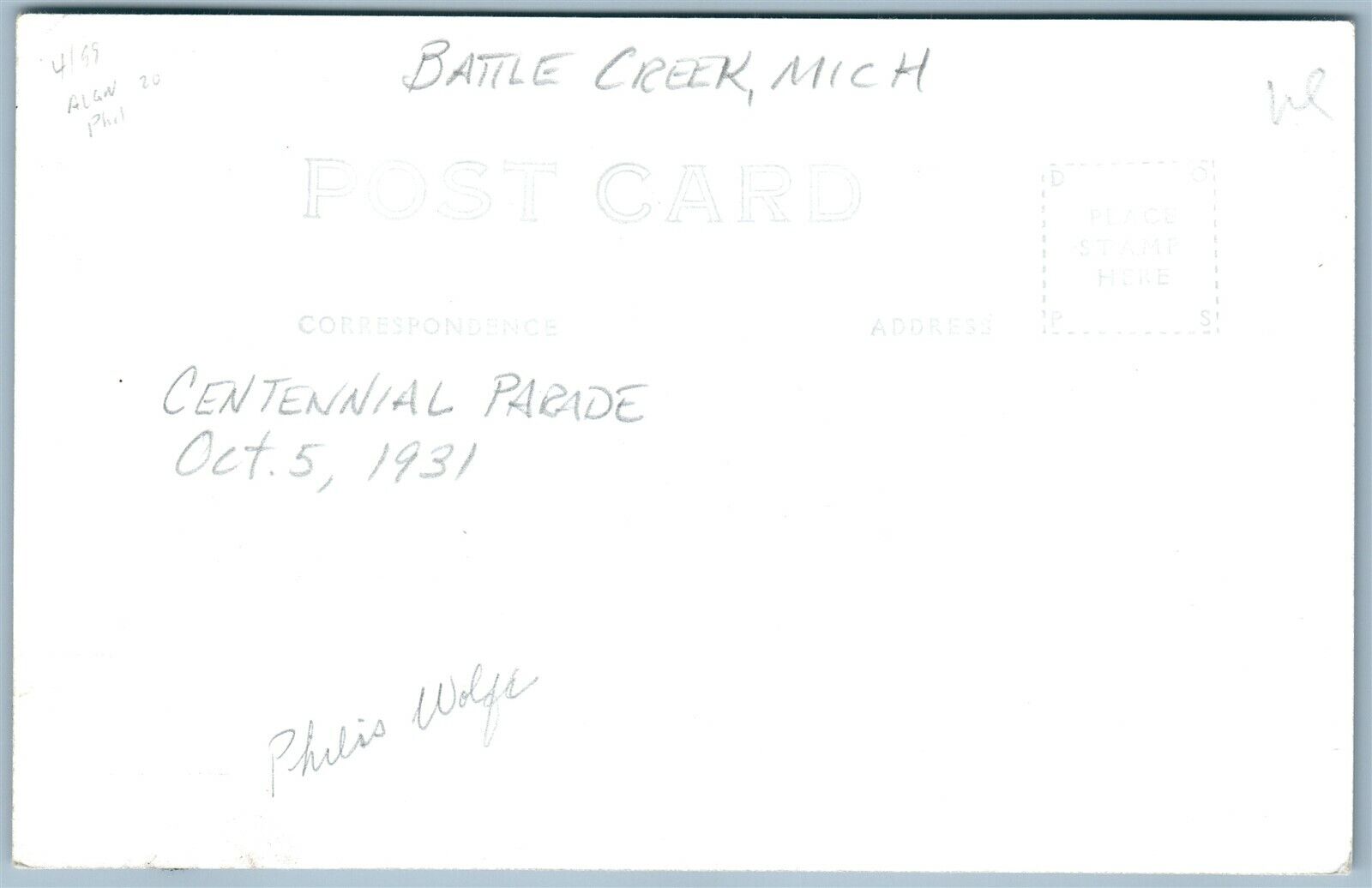 BATTLE CREEK MI 1931 CENTENNIAL PARADE VINTAGE REAL PHOTO POSTCARD RPPC