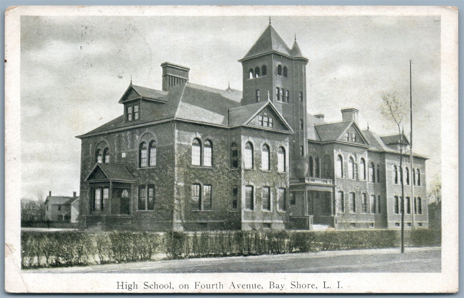 BAY SHORE LONG ISLAND NY HIGH SCHOOL on FOURTH AVENUE ANTIQUE POSTCARD