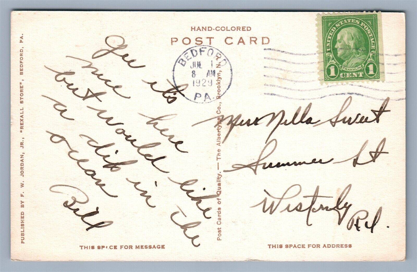 BEDFORD PA WASHINGTON'S HEADQUARTERS ANTIQUE POSTCARD