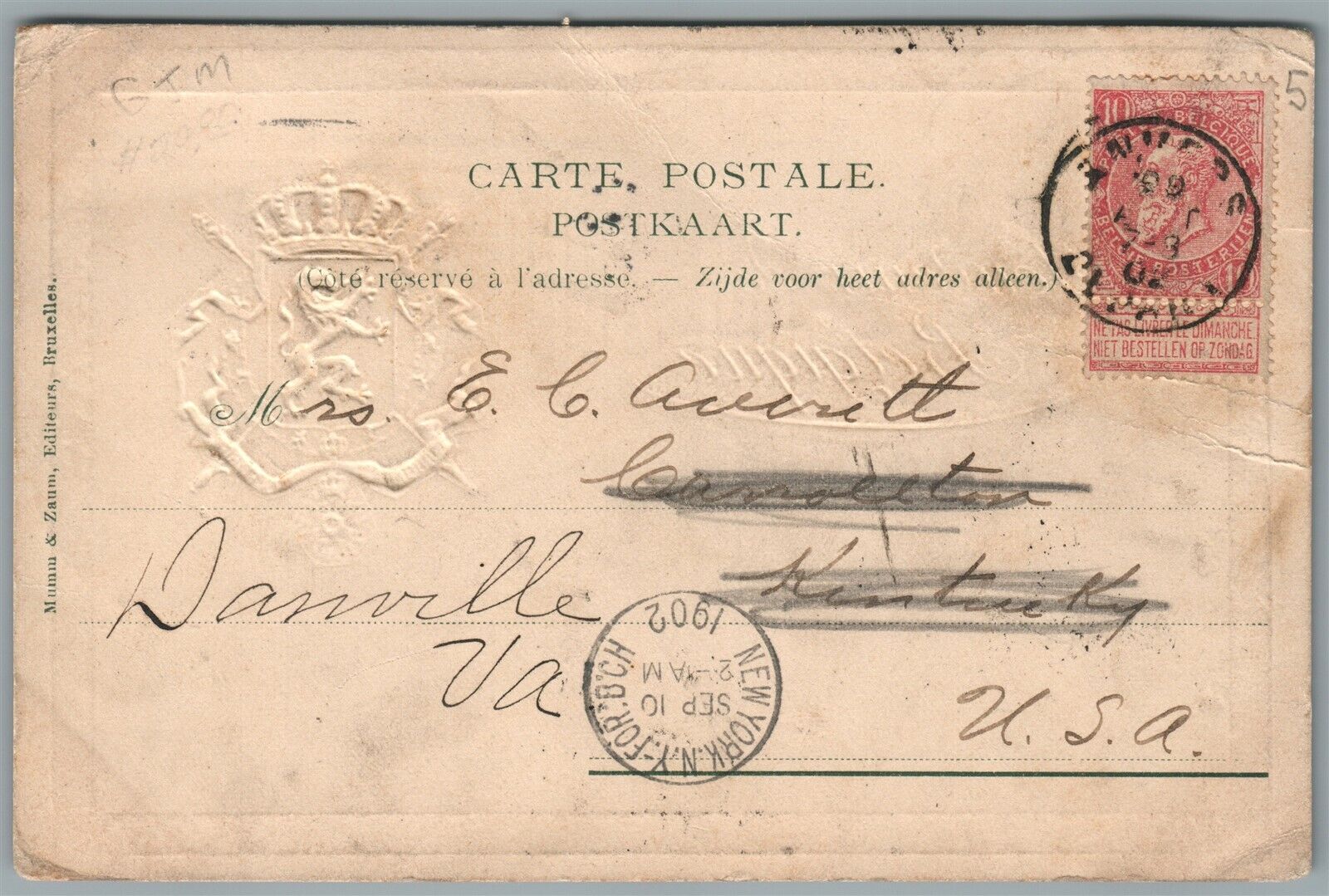 BELGIUM 1902 EMBOSSED ANTIQUE POSTCARD w/ STAMP