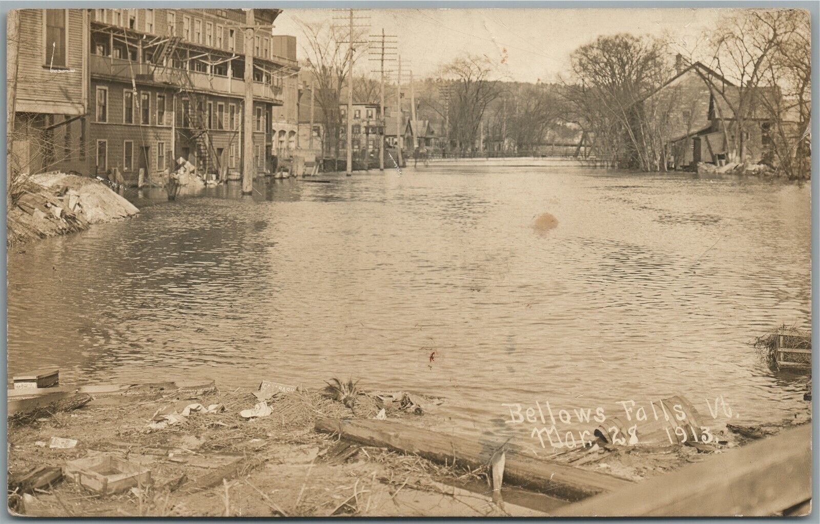 BELLOWS FALLS VT MARCH 28 1913 FLOOD SCENE ANTIQUE REAL PHOTO POSTCARD RPPC
